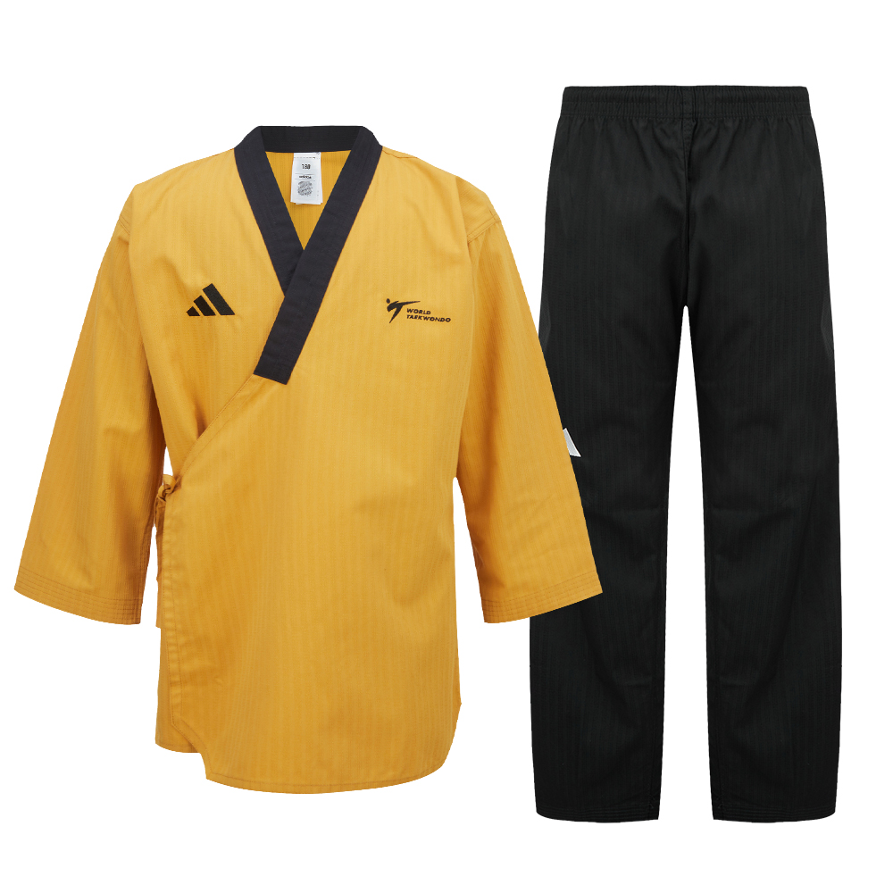 세계태권도연맹(WTF) 공식 품새 경기 고단 도복이며, 스타일과 기능을 모두 갖춘 아디다스 태권도 도복입니다.
